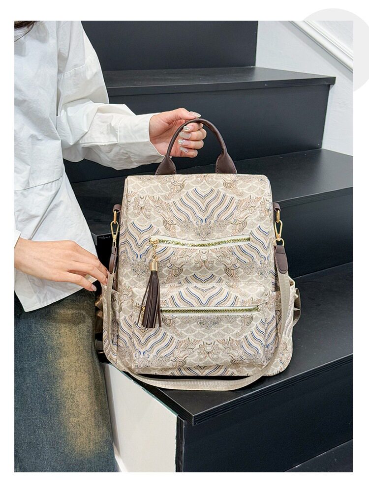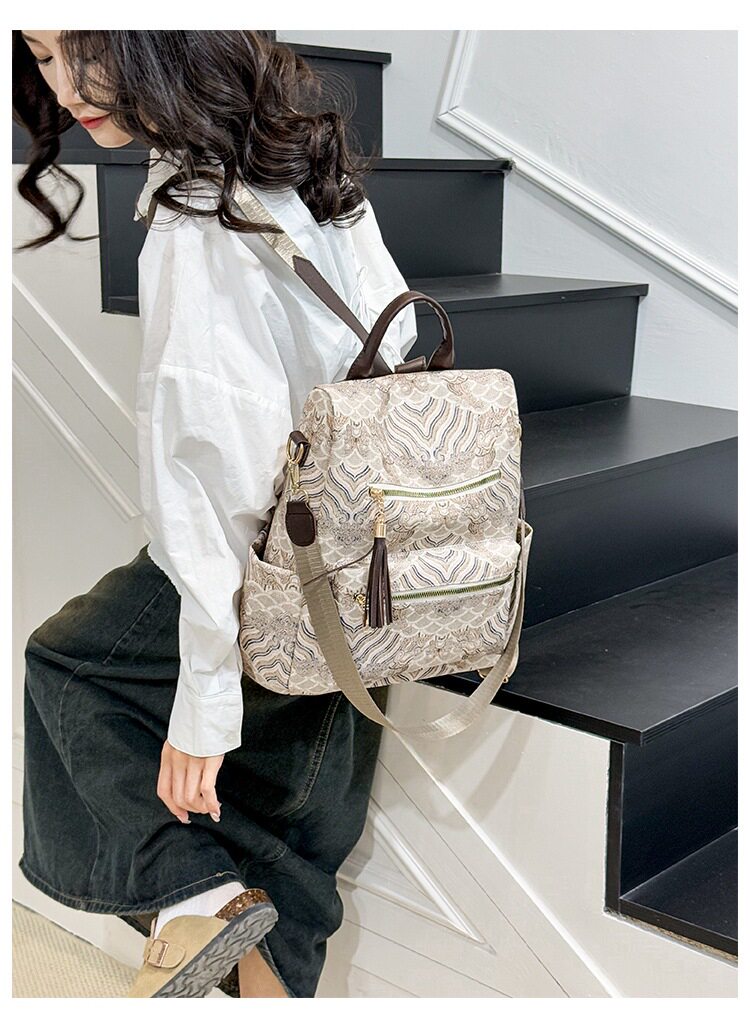 Backpack with Tassel Zip (Cream-White)