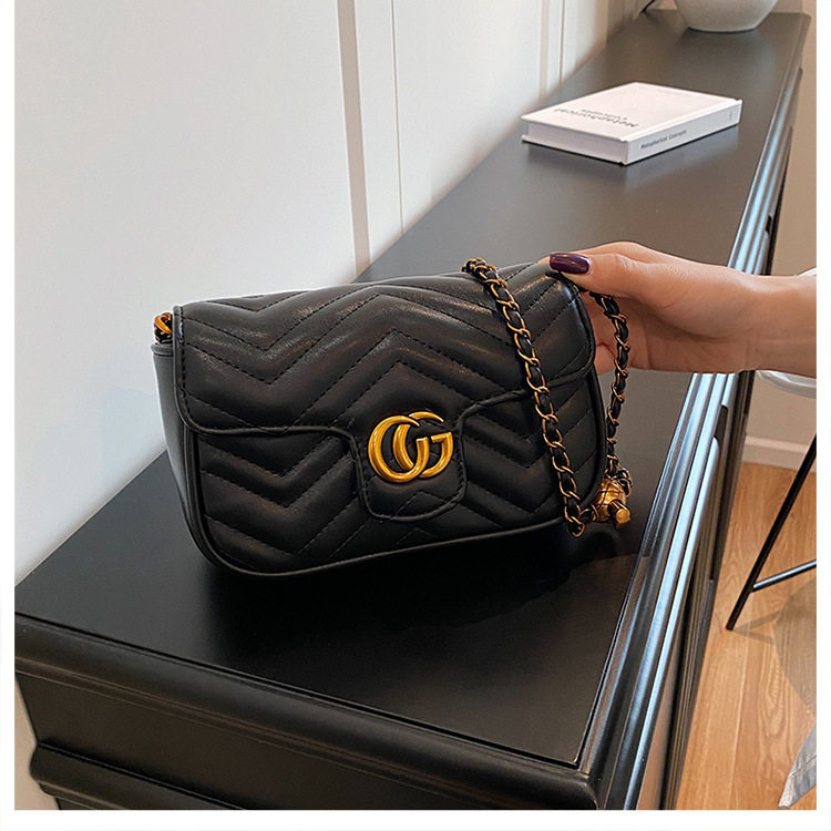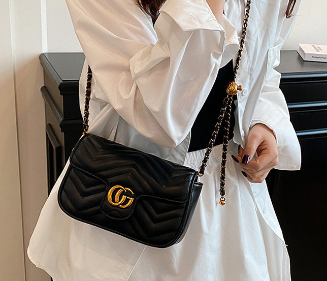 Gucci Inspired Quilted chain Shoulder bag (Black)